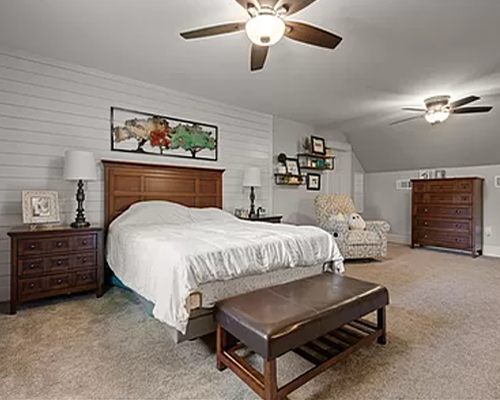 amazing cork flooring throughout and ship-lap accent walls.